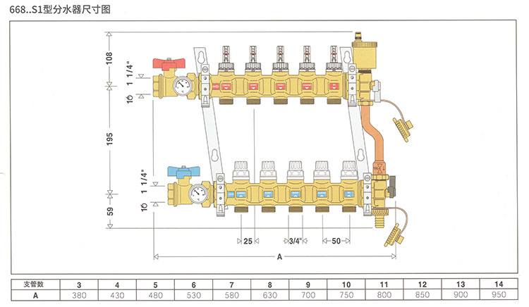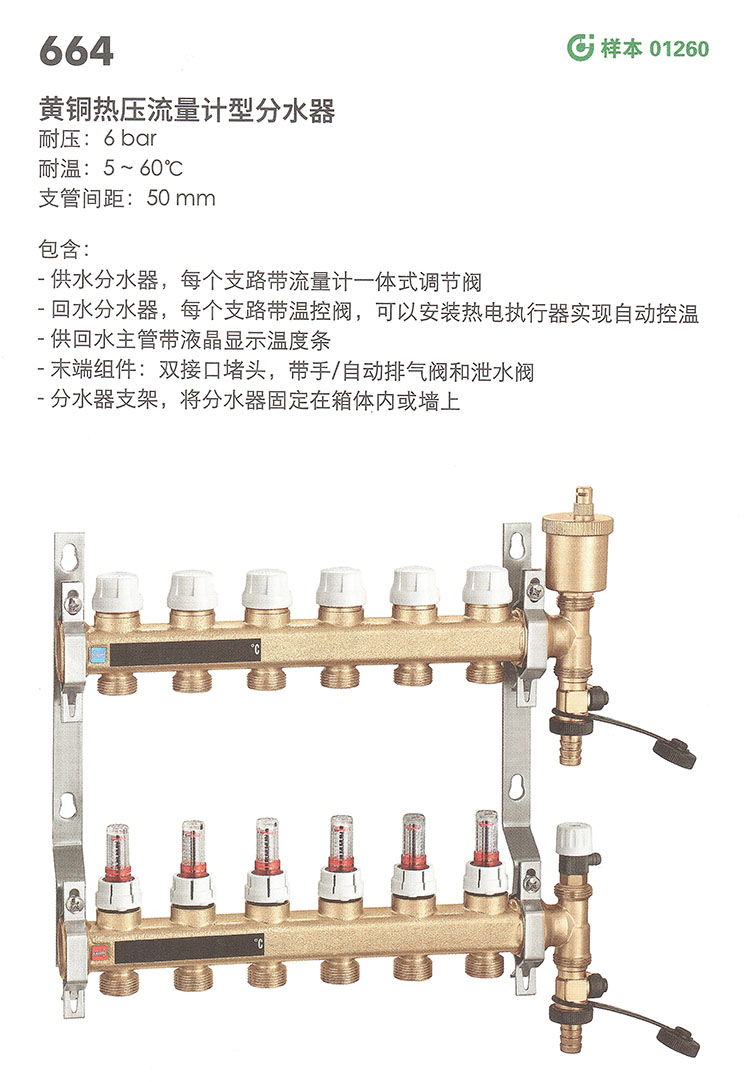 黄铜热压流量计型分水器